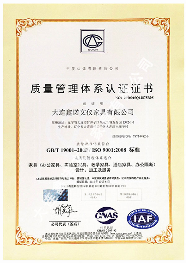 大連鑫諾文儀家具有限公司總部位于中國(guó)的北方明珠-大連。公司以教育設(shè)備,家具裝飾裝修為主導(dǎo)產(chǎn)業(yè)。經(jīng)過(guò)近10年的發(fā)展,又涉及科學(xué)實(shí)驗(yàn)設(shè)備工程、教育裝備工程、圖書(shū)館裝備工程、教學(xué)儀器等各類(lèi)家具的生產(chǎn)與研發(fā)。 公司建設(shè)了大型生產(chǎn)基地,總面積超過(guò)一萬(wàn)平方米,員工150多人。經(jīng)全體員工多年的不懈努力,公司已發(fā)展成為在大連、沈陽(yáng)擁有多家公司和生產(chǎn)基地,并在國(guó)內(nèi)擁有多家聯(lián)營(yíng)公司的科、工、貿(mào)為一體的綜合性實(shí)業(yè)企業(yè)。 鑫諾家具實(shí)業(yè)已通過(guò)ISO9001:2000國(guó)際質(zhì)量管理體系認(rèn)證,ISO14001:2004國(guó)際環(huán)境管理體系認(rèn)證。公司堅(jiān)持走品牌發(fā)展路線(xiàn)。旗下產(chǎn)品和服務(wù)有“家具名牌”“家具著名品牌”等多項(xiàng)榮譽(yù)。其品牌大部分已遍布東北三省、山東省等地,涉及十幾個(gè)行業(yè)等上萬(wàn)家企業(yè)單位和高校